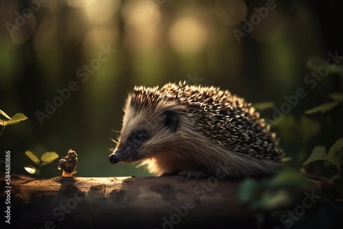 Fototapeta premium Hedgehog in the forest. AI Generated