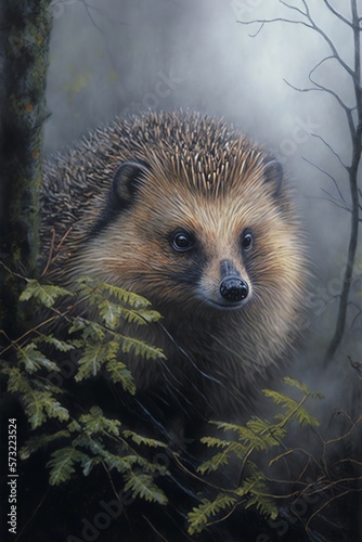 © Rob, Fototapeta premium hedgehog in the forest, atmospheric image, photo realistic, generative Ai.