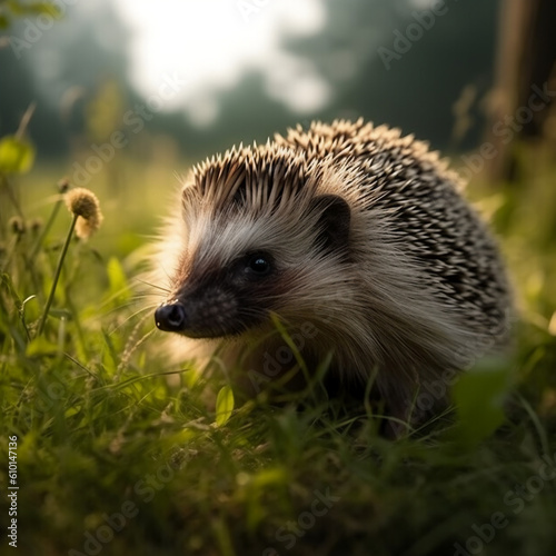 © panyawatt, Fototapeta premium hedgehog in the grass field during the day