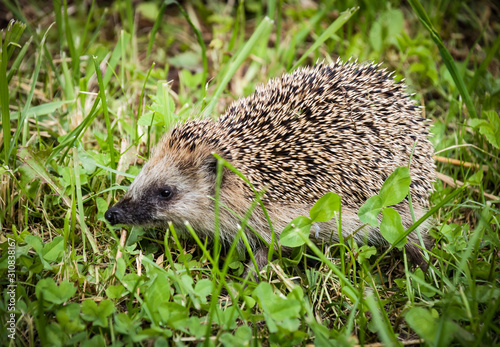 © Антон Ямщиков, Obraz premium Hedgehog on the grass closeup