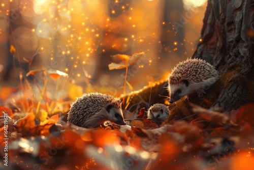 © Rawpixel.com, Obraz premium Hedgehogs autumn plant leaf.