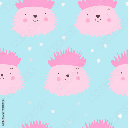 Fototapeta premium Hedgehogs cartoon repeat pattern cute simple minimalistic