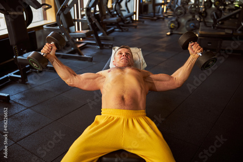 Fototapeta premium Hefty sportsman having a proper dumbbell workout