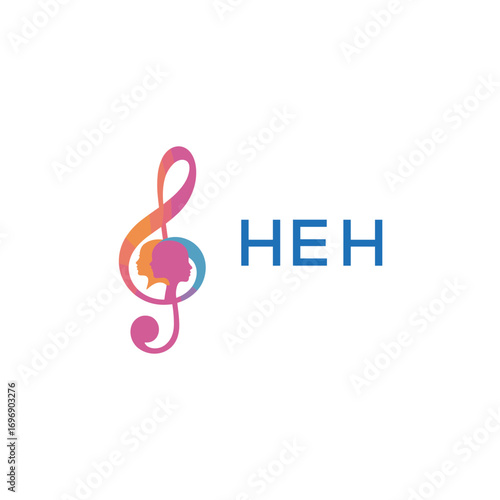Fototapeta premium HEH “Colorful music logo with human faces and treble clef design” HEH Later Logo, “Creative music academy logo with silhouette heads and notes”