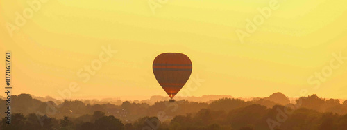 © embeki, Fototapeta premium Heißluftballon am Abendhimmel Panorama
