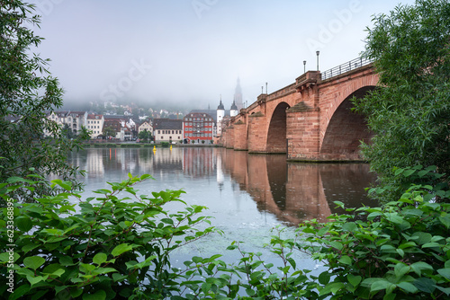 Fototapeta premium Heidelberg Old Bridge (Alte Brücke) on a misty summer morning