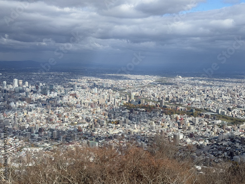 © Snowhite, Obraz premium HeIght view with panoramic scenery in Sapporo Japan. Moiwa Ropeway with blur sky and cloudy