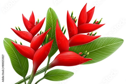 © Lubos Chlubny, Fototapeta premium Heliconia flowers red tropical botanical illustration