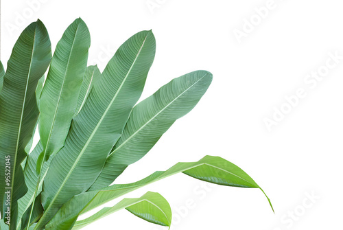 Fototapeta premium Heliconia : green leaf on isolate white background.