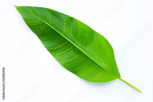 Obraz premium Heliconia leaf on white background.