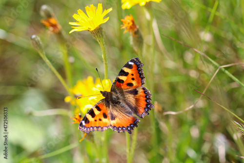 © imagoDens, Fototapeta premium Heliconius melpomene butterfly on a green leaf