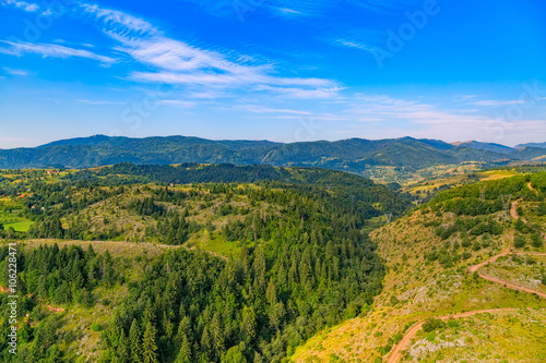 Fototapeta premium Helicopter aerial photo of the mountain nature in Montenegro continental part.