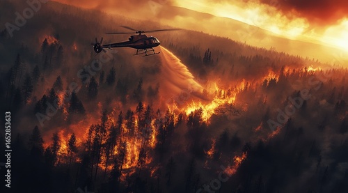 © irwan, Obraz premium Helicopter battling forest fire (1)