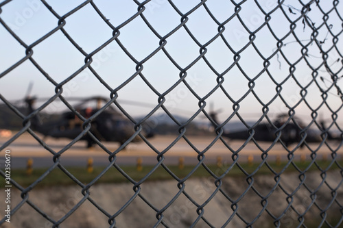 © bong, Fototapeta premium helicopter runway behind the fence