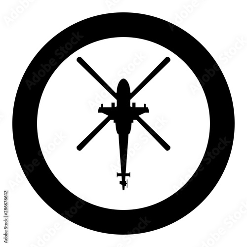 Fototapeta premium Helicopter top view Battle helicopter icon in circle round black color vector illustration flat style image