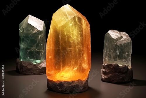 Obraz premium Heliodor is rare precious natural stone on black background. AI generated....