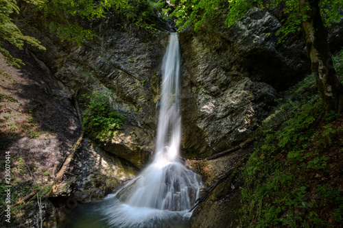 Naklejka premium Hell Gorge (soteska Pekel) is a 1.5-kilometre gorge in Slovenia. The creek has many erosion features such as pools, rapids, and waterfalls, of which five are distinct as they plunge from 20 to 5 m.