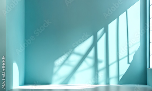 Fototapeta premium hellblauer Raum mit abstraktem Schattenwurf, gen AI