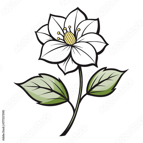 © Mariam, Fototapeta premium hellebore white line art on white background