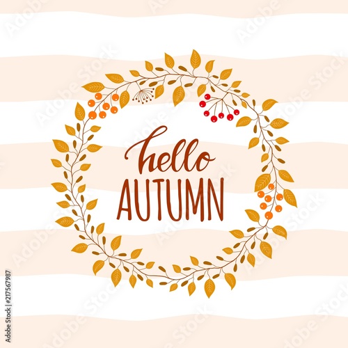 Obraz premium Hello Autumn vector illustration. Floral frame. Vector background