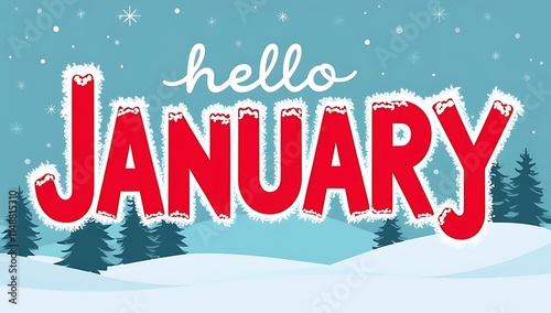 Fototapeta premium Hello January Snowy Winter Landscape Greeting