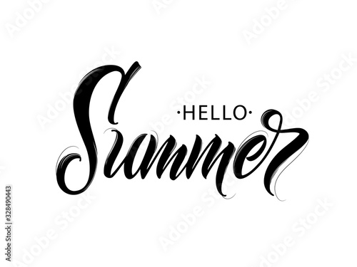 Fototapeta premium Hello Summer handwritten lettering. Hello Summer typography vector design for...