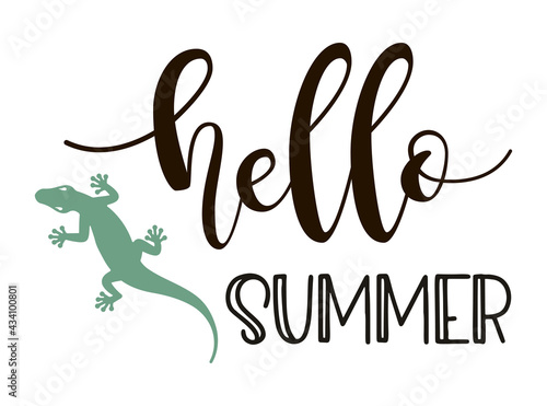 © Katsiar, Obraz premium Hello Summer Lettering with Pineapple. Vector Illustration