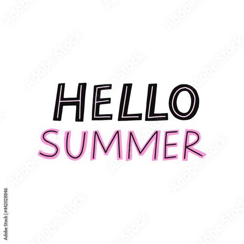 Fototapeta premium Hello summer vector hand drawn lettering. Cute modern flat style quote, isolated on white background.