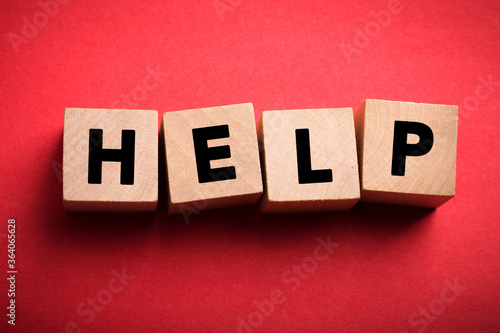 © christianchan, Obraz premium Help Concept Wooden Cube Blocks