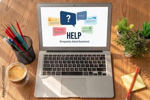 Fototapeta premium Help screen on the website provide answer to FAQ frequently asked question snugly with knowledge information and solution by customer support