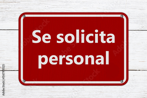Obraz premium Help Wanted Se solicita personal red sign on weathered wood