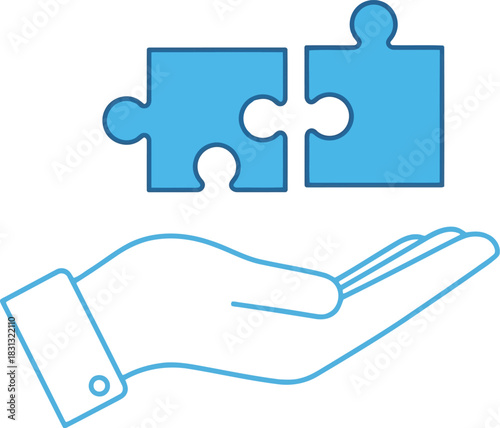 © SAIF820, Obraz premium Helpful hand holding blue puzzle pieces connecting for teamwork solution concept vector