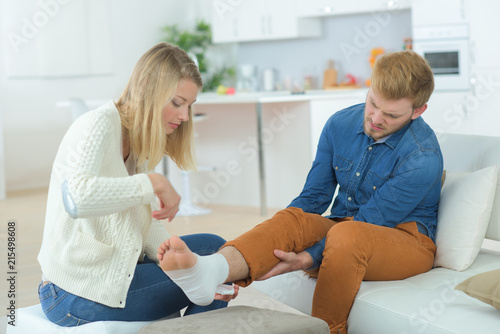 Fototapeta premium Helping boyfriend with damaged ankle