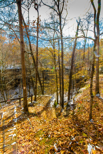 © Richard, Fototapeta premium Hemlock Cliffs in Autumn after a light snow, Indiana