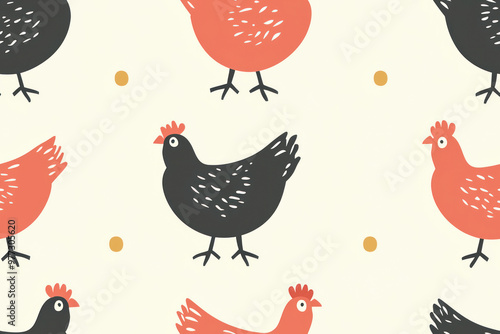 © Inspiration, Obraz premium Hen cartoon seamless pattern.