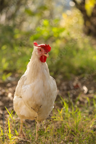 © sea and sun, Fototapeta premium hen chicken free range in the meadow