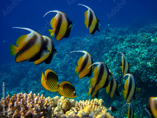 © glebantiy, Fototapeta premium Heniochus intermedius in the expanses of the coral reef of the Red Sea