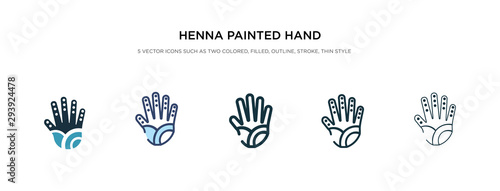 Fototapeta premium henna painted hand icon in different style vector illustration. two colored and black henna painted hand vector icons designed in filled, outline, line and stroke style can be used for web, mobile,