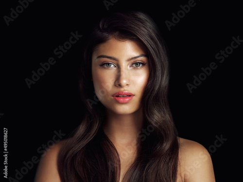 Fototapeta premium Her beauty dazzles even in the dark. Studio shot of a beautiful woman posing against a black background.