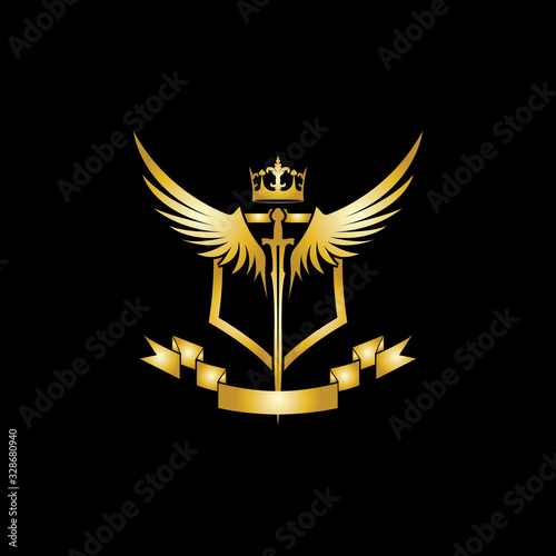 © Sunar, Obraz premium Heraldic Composition with crown, swords, wings, shield and ribbon.