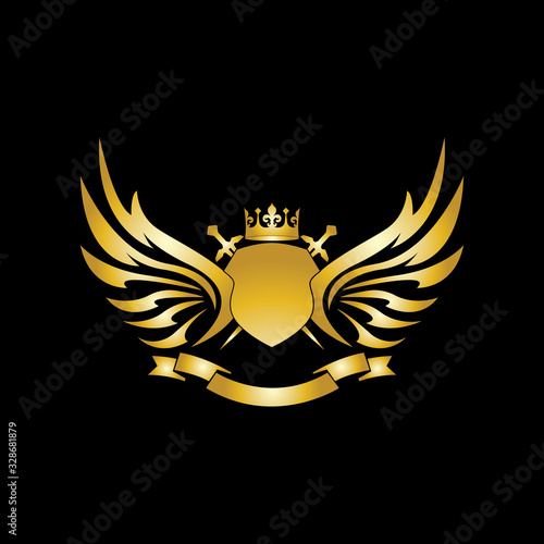 © Sunar, Obraz premium Heraldic Composition with crown, swords, wings, shield and ribbon.