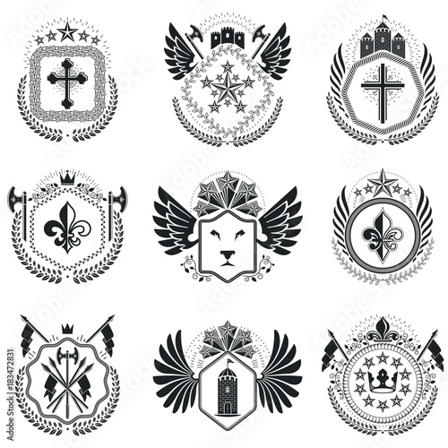 Fototapeta premium Heraldic designs, vector vintage emblems. Coat of Arms collection, vector set.
