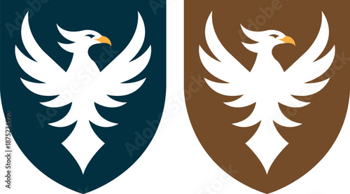Obraz premium Heraldic eagle or phoenix silhouette on shield for security and premium branding