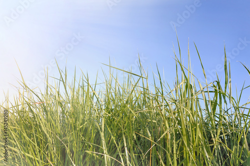 © coco, Fototapeta premium herbe dans la lumière du soleil sous ciel bleu