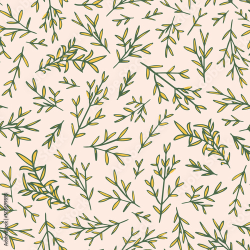 © MoJX.Studio, Obraz premium Herbs seamless repeat pattern. Random placed, vector botanical all over surface print.