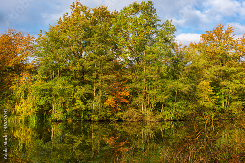 © penofoto.de, Fototapeta premium Herbsliche Vegetation am Ufer der Eider in Schleswig-Holstein