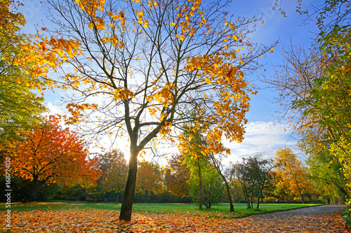 © Jenny Sturm, Fototapeta premium Herbst - Blätter fallen vom Baum
