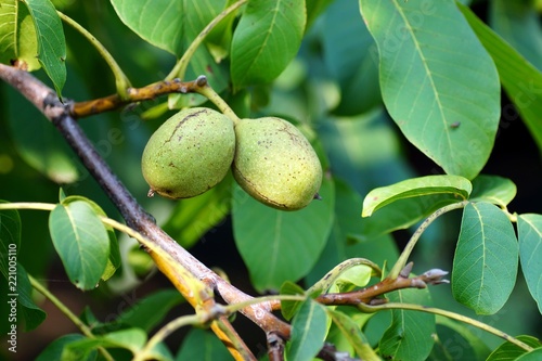 Obraz premium Herbstbild: Walnüsse an einem Walnussbaum