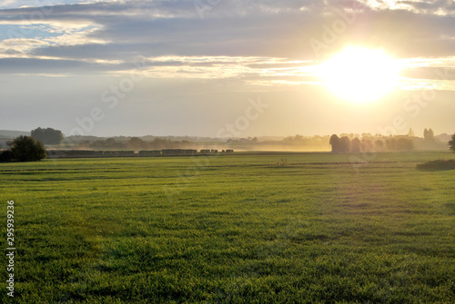 Obraz premium Herbstlandschaft, Sonnenuntergang, Wiese, Wolken, Himmel