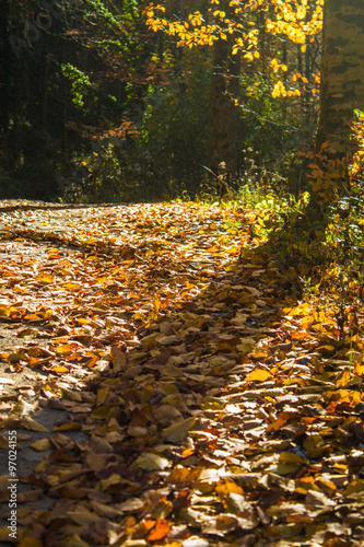 © fotogerstl, Obraz premium Herbstlaub am Wegrand
